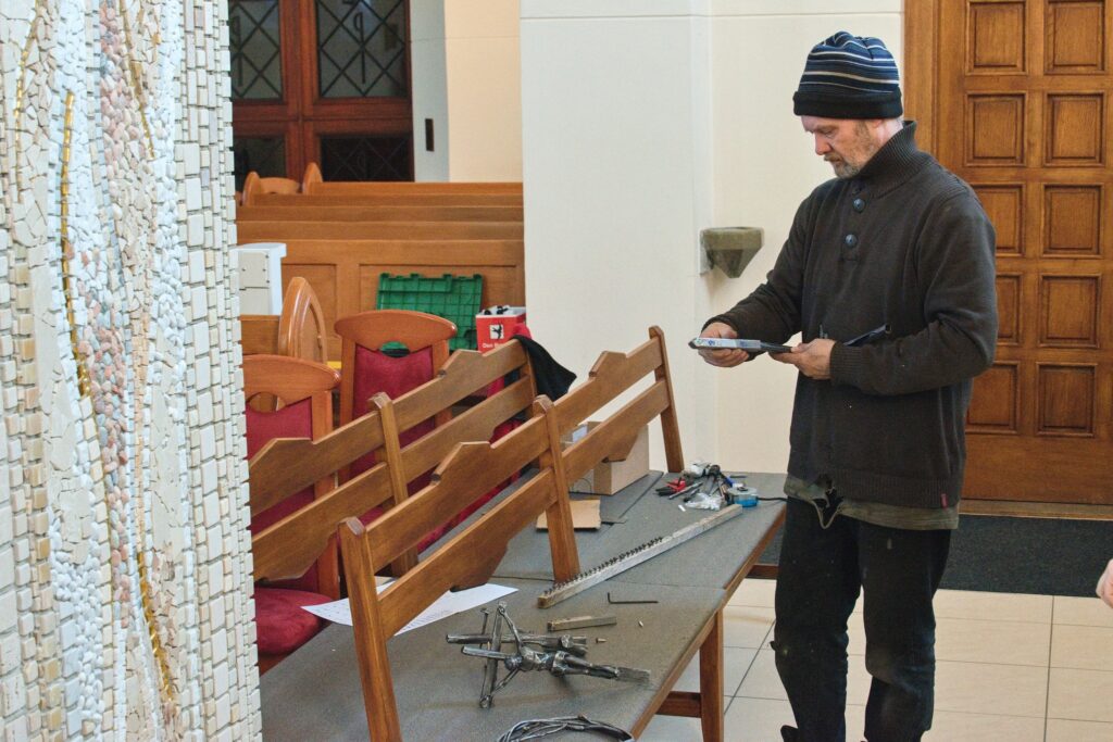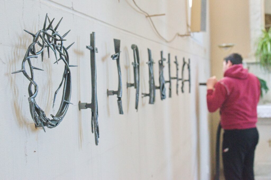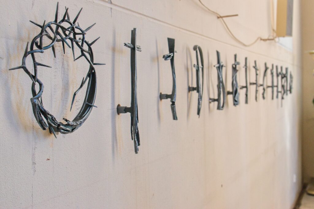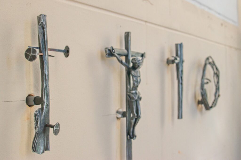 Náš bílovický kostel má opět svou křížovou cestu. Nachází se na zdi v boční lodi a rozhodně stojí za pozornost. Čtrnáct zastavení v jednoduchém symbolickém provedení je autorským dílem pana Cacha, který je už podepsán pod několika kovářskými pracemi na našem kostele nebo v jeho okolí.