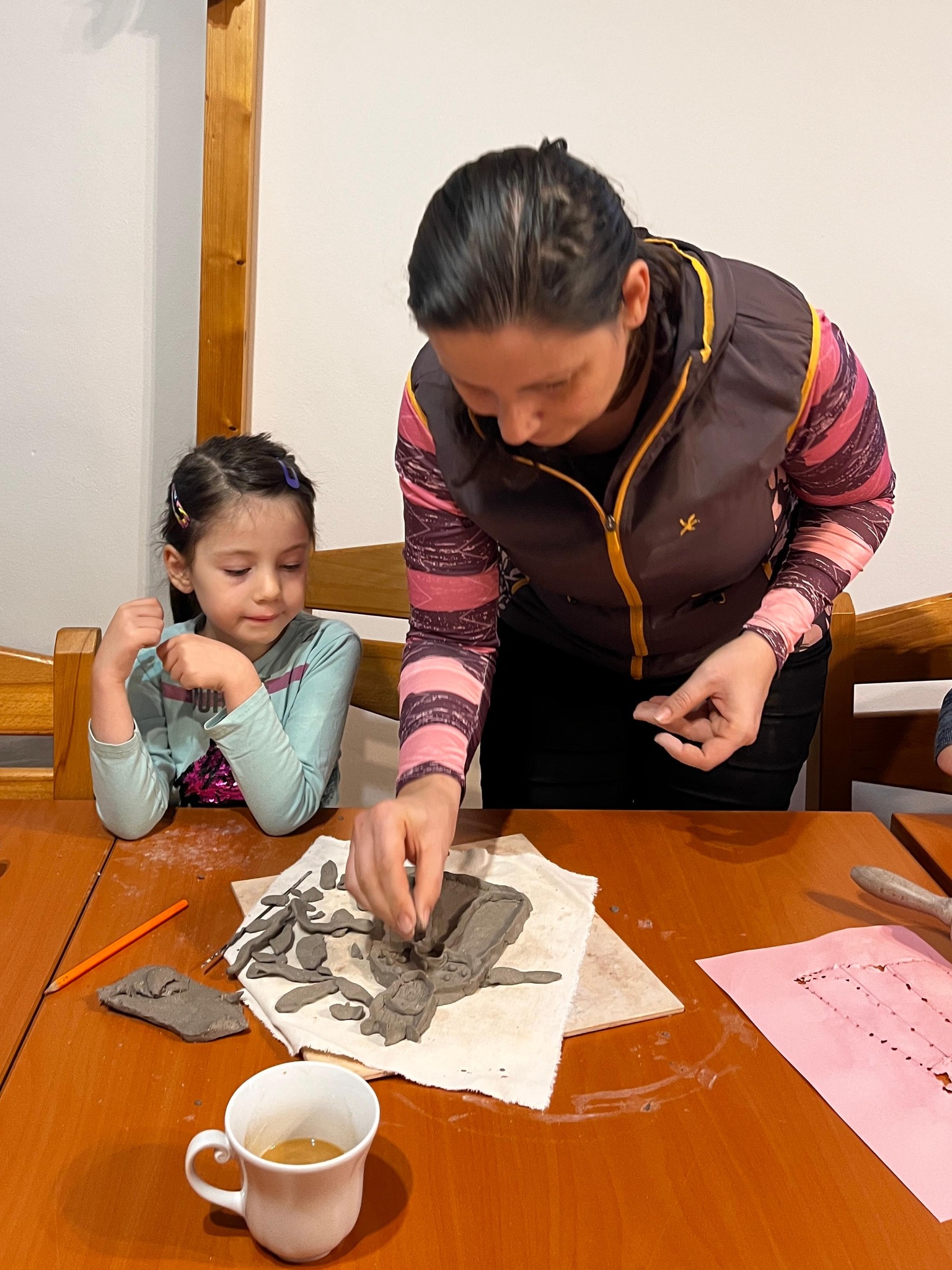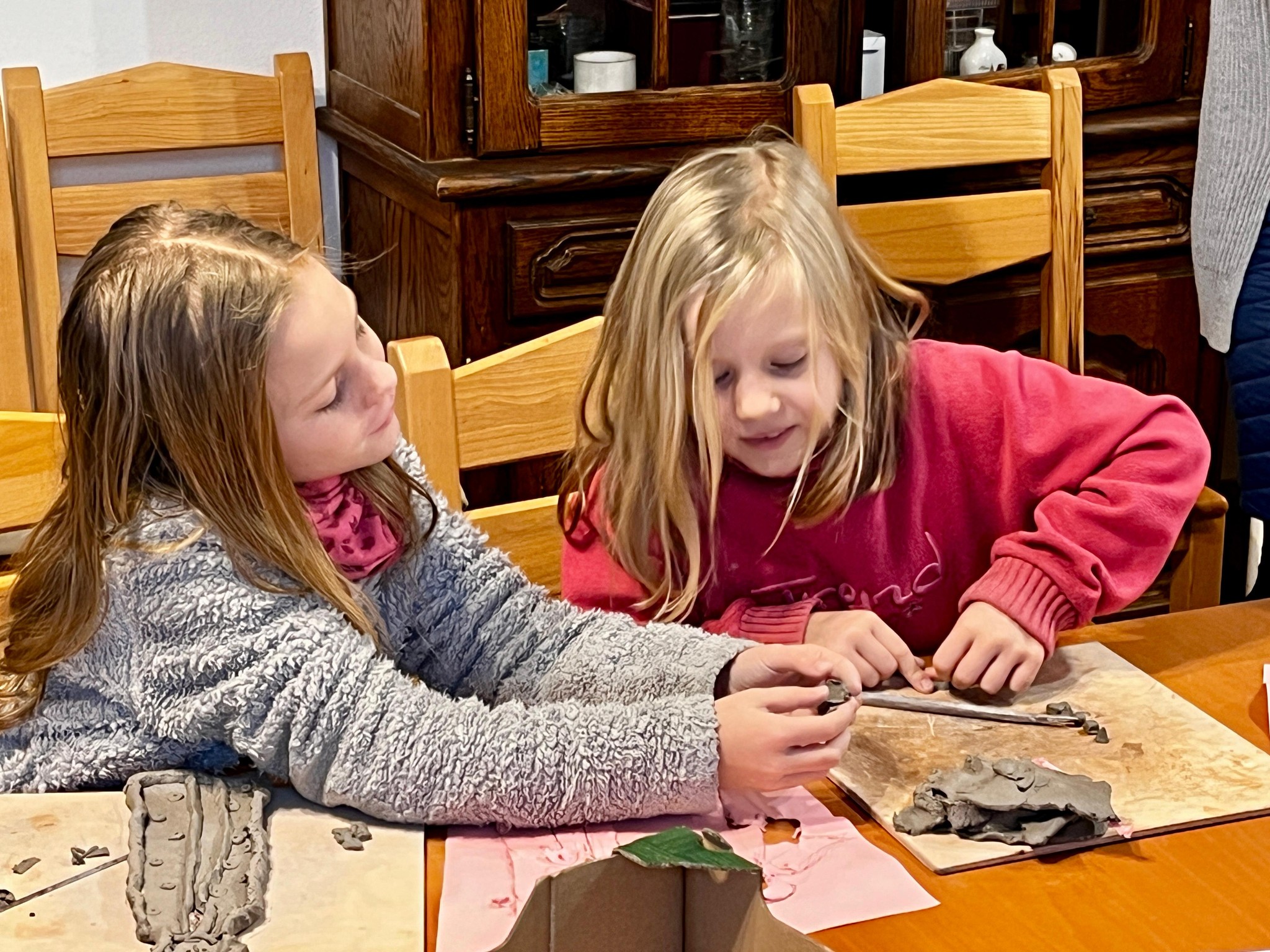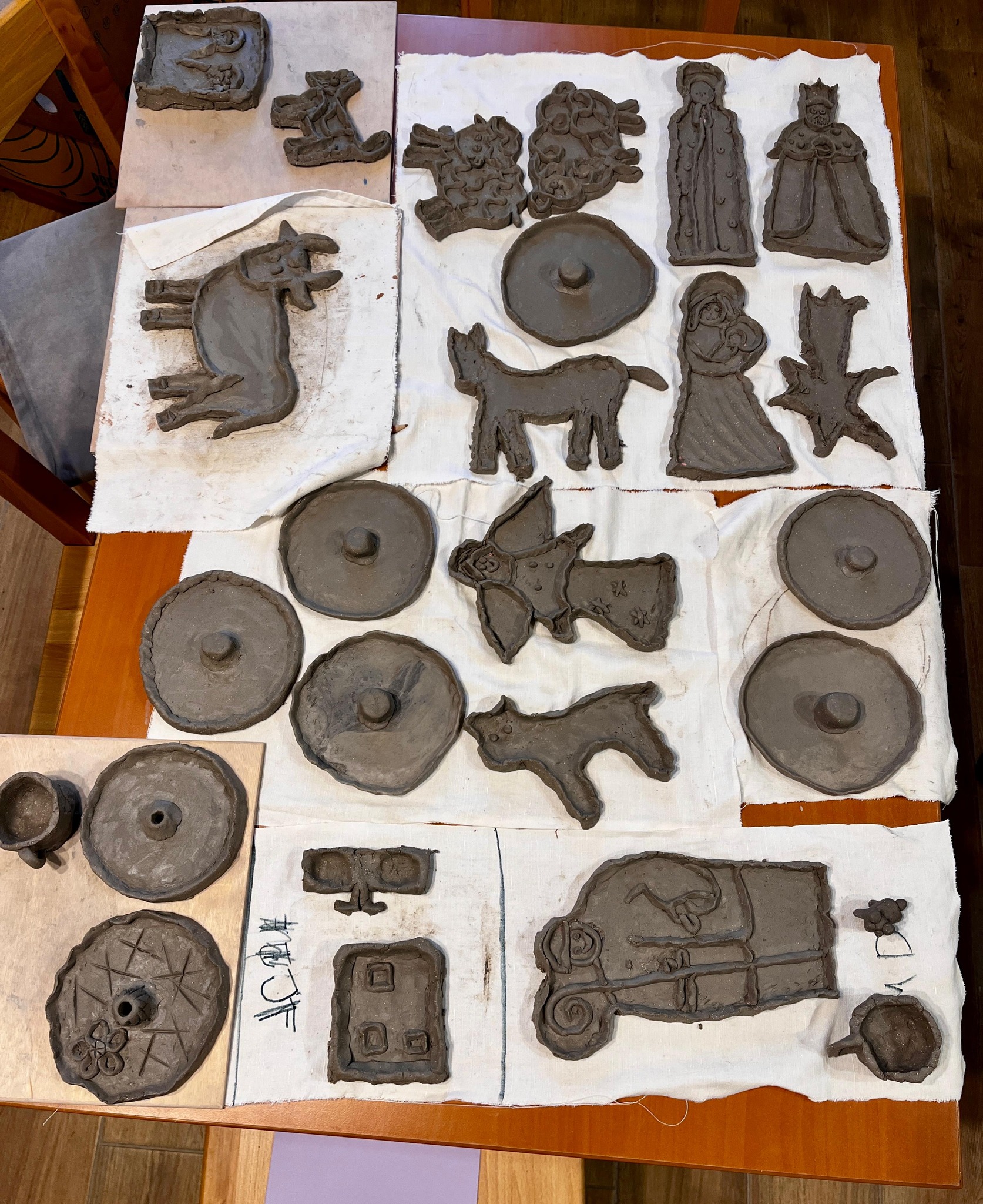 Tři sobotní setkání, tři adventní dílničky pro děti. V 7 hod. roráty, po nich snídaně a pak už se může tvořit. Na tu první dílničku Ola Hořavová připravila vcelku velkou výzvu – postavy do keramického betléma. Nakonec se k dětem přidalo i pár odvážných dospělých. Všichni vytvářeli z hlíny postavy do nového betléma v kostele. A někteří opravdu ukázali veliký talent.