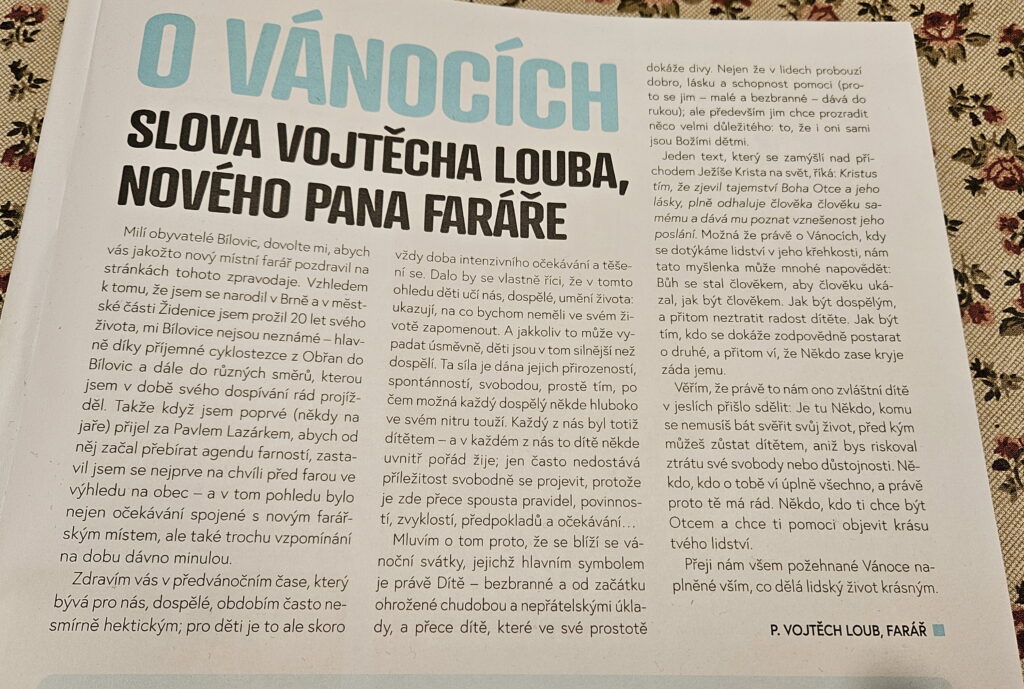 Ve čtvrtém letošním čísle Bílovického zpravodaje můžete najít i příspěvek našeho pana faráře k Vánocům.