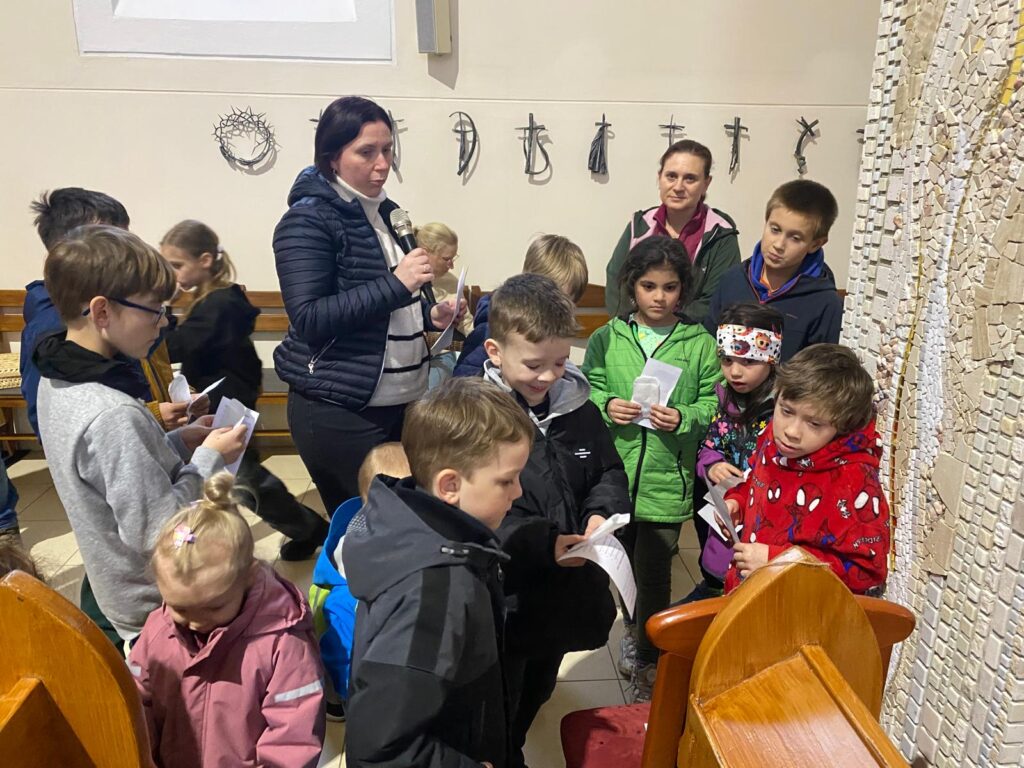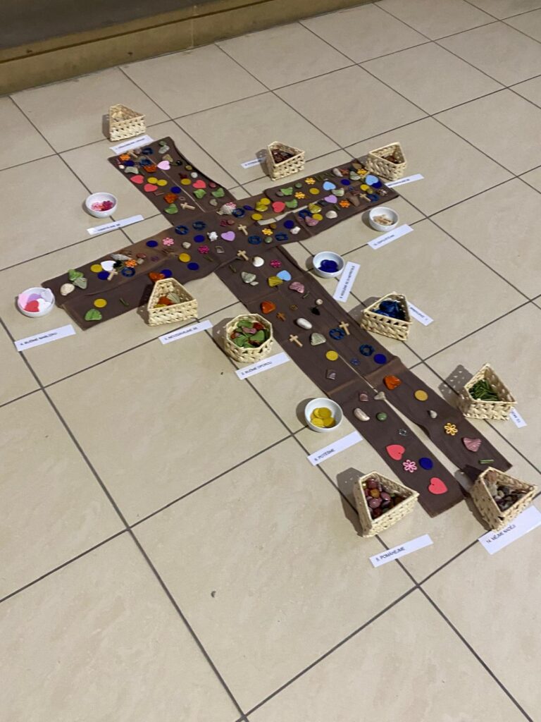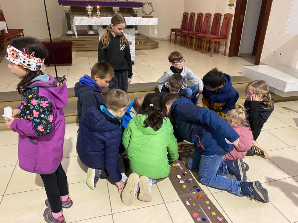 V pátek 27. března se před mší sv. konala křížová cesta pro děti. Na každém zastavení si mohly děti vzít kamínek, korálek či jinou dekoraci za předsevzetí, které se chtějí snažit dodržet (neposmívat se ostatním, zastat se slabých, modlit se za rodiče…). Těmito kamínky nakonec ozdobily kříž u oltáře – díky Ježíšově oběti a našim předsevzetím krásně rozkvetl.