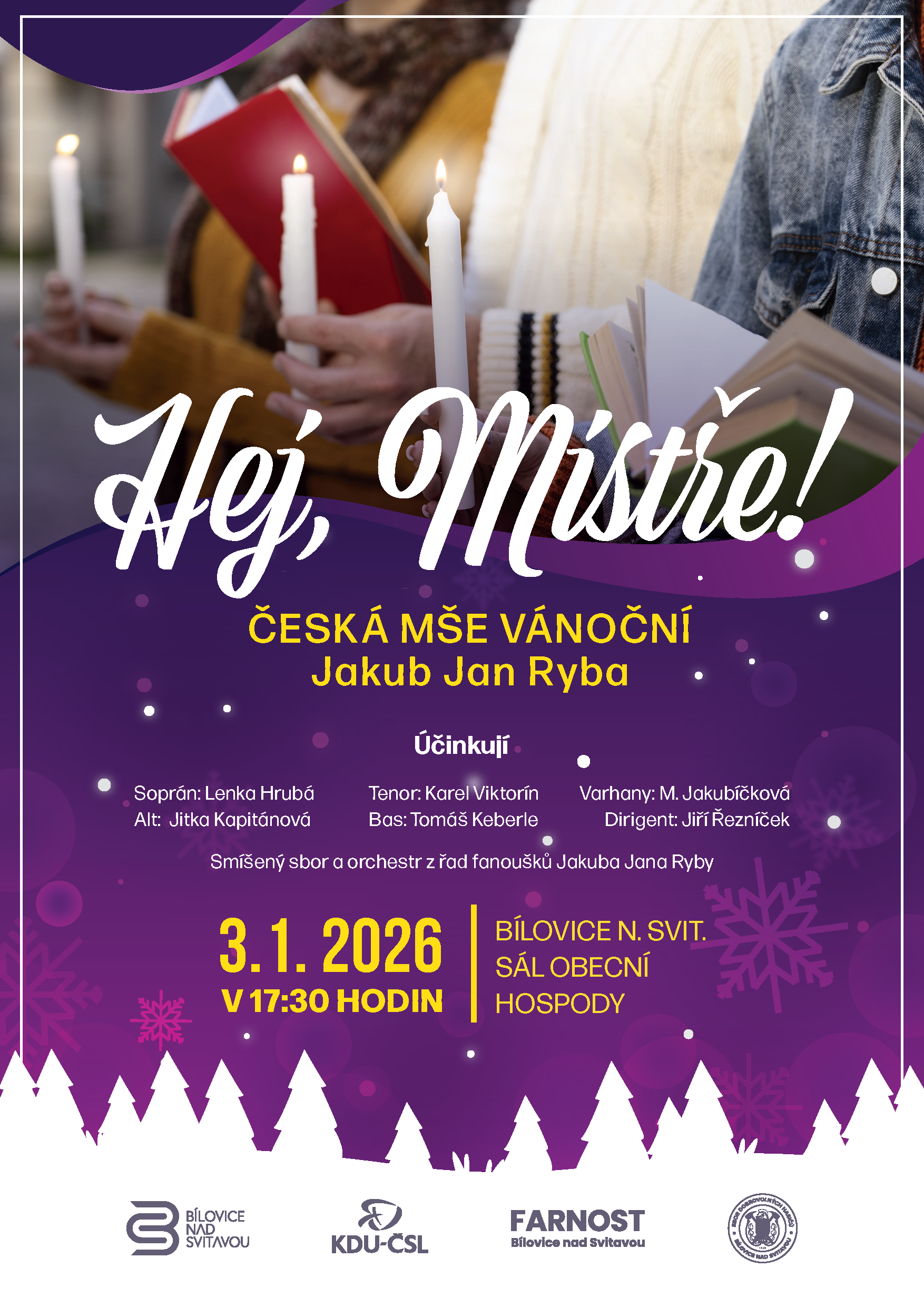 - Sobota 3. ledna 2026: Rybovka smíření – Hej, Mistře! Česká mše vánoční J. J. Ryby – v 17:30 hod. v sále Obecní hospody;